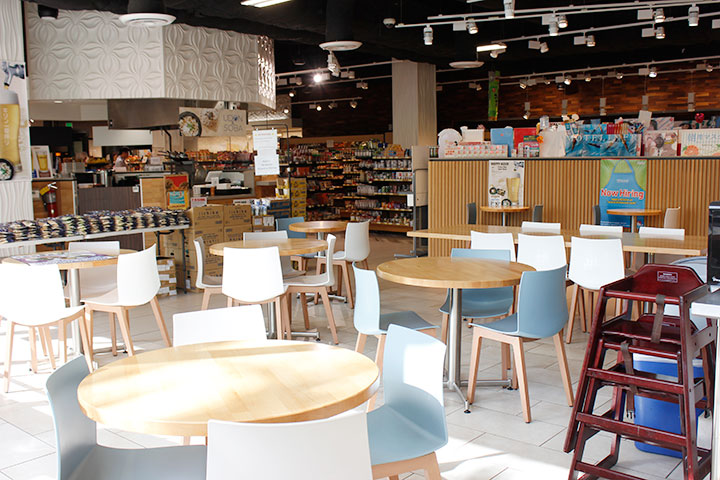 シンプルで清潔な印象のフードコートにはテーブルも多く用意されています。食べ物を購入してすぐにその場でいただくことができるのも嬉しい限りですね。