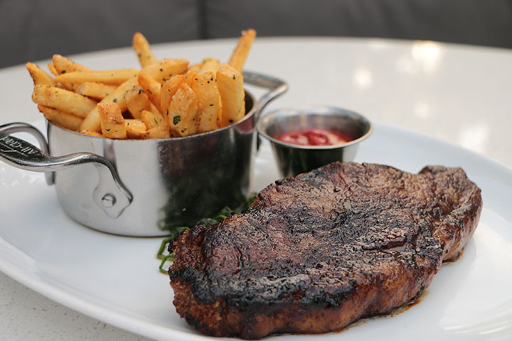 「ストリップステーキ」は、セレブシェフのマイケル・ミーナ氏による高級ステーキレストラン。広々としたレストランでは、開放的な雰囲気の中で高品質の肉を使用したステーキを満喫することができます。