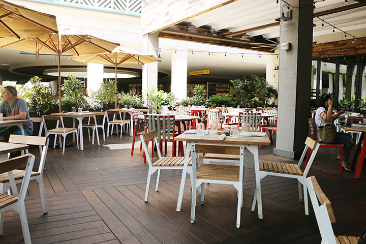 カリフォルニアのビーチコテージを彷彿とさせるオープンエアのレストランは、カジュアルで明るく開放的な雰囲気。グループで賑やかにお喋りしながら、またはパートナーとロマンティックなひとときを楽しみながらの食事にも最適です。