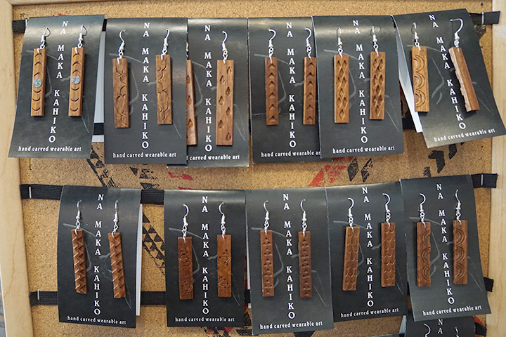 フラダンサーに大人気のコアウッドのイヤリング。個性的なハワイアンジュエリーは日本に持ち帰りたいアイテムのひとつ。