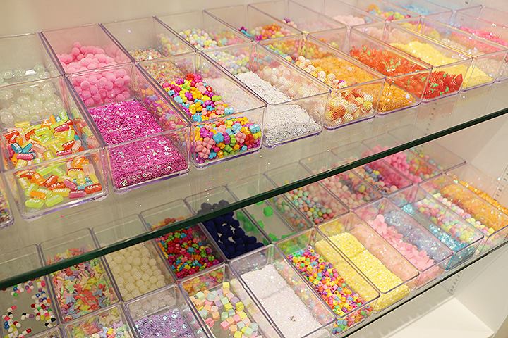 スライムは4種類から選び、400種類もあるビーズやスパンコールから好きなものを選んでスライムに混ぜて遊びます。