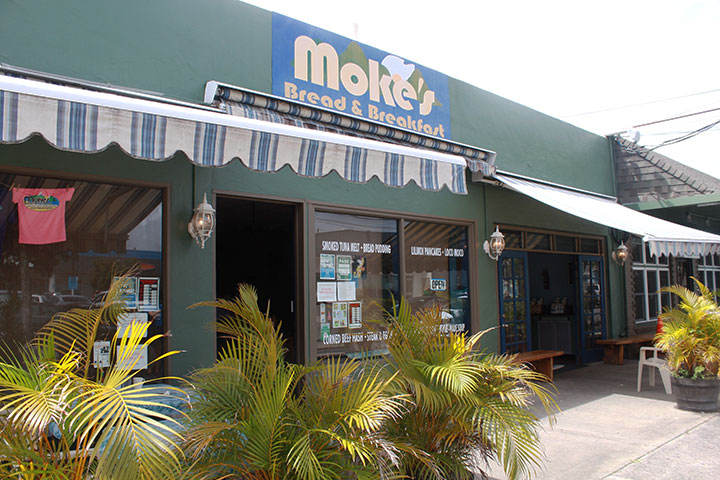 カイルアには様々なレストランのチョイスがありますが、この日はパンケーキが人気の「モケズ・ブレッド&ブレックファスト(Moke's Bread & Breakfast)」で食べることに決定! もちろん、大人気の「リリコイ・パンケーキ」を食べてきましたよ!