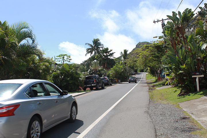 パリ・ハイウェイはカイルアタウンでカイルア・ロード(Kailua Road)に変ります。そのまま右側に進むカイルア・ロード、あるいは直進してクウレイ・ロード(Kuulei Road)を通りサウス・カラへオ・ロード(South Kalaheo Road)とのT字路で右折するのが簡単。そのまま進み、カイルア・ビーチパークを左側に望んで、モクルア・ドライブ(Mokulua Drive)へ。