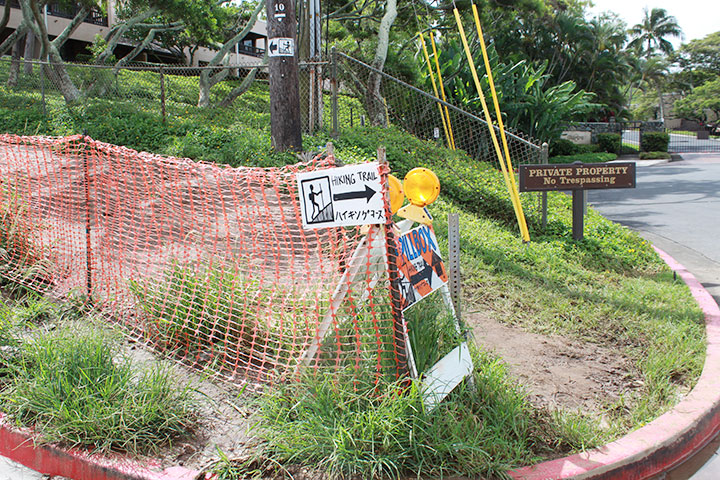 ラニカイはカイルアエリアでも割と乾燥しているため普段は表面が滑りやすい赤土です。油断すると転びやすいので、金網や木、ロープを使ってここを突破する人が多いようです。