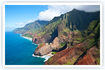 ハワイ諸島の北端にあり、ハワイの中で最も古い島。島の大きさはオアフ島とほぼ同じです。 リゾートがある南側や沿岸部は晴れの日が多く過ごしやすい気候。その一方、人里離れた島中心の内陸部には、年間降水量約1万mmを記録する標高1,569mのワイアレアレ山がそびえたち、熱帯雨林に恵みをもたらしています。