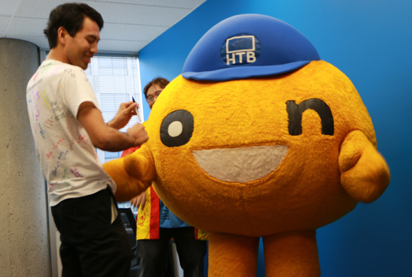2016年6月10日(金)、北海道テレビの人気マスコットキャラクター「onちゃん」がMyハワイに遊びに来てくれました。onちゃんは、北海道で見かけない日はないといってもいいほど、テレビやイベントなどに毎日登場して、大人気のキャラクターです。また、バラエティ番組「水曜どうでしょう」でも活躍し、北海道だけでなく全国区でも人気になりました。