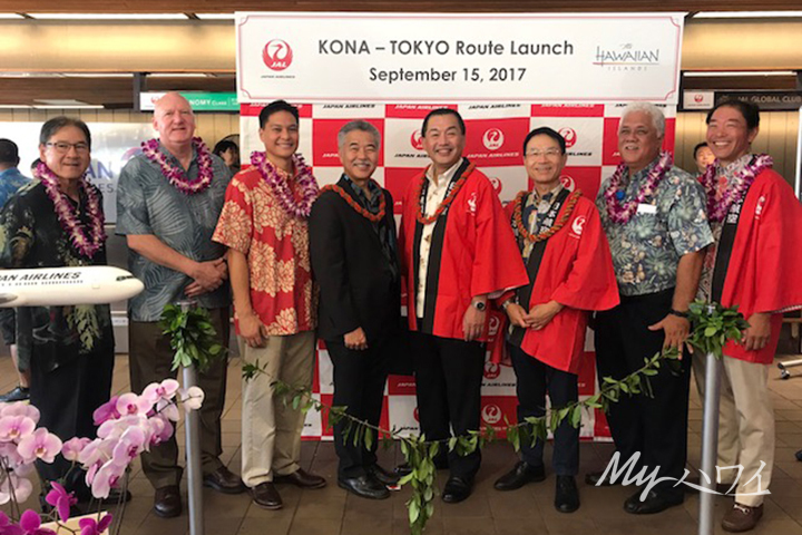 ハワイ時間9月15日に、JAL(日本航空)が、成田-ハワイ島コナ線の運航を再開しました。これに際し、同日午前9時にコナ国際空港で就航を記念するイベントが開催されました。 2010年10月以来、約7年ぶりの再開となります。