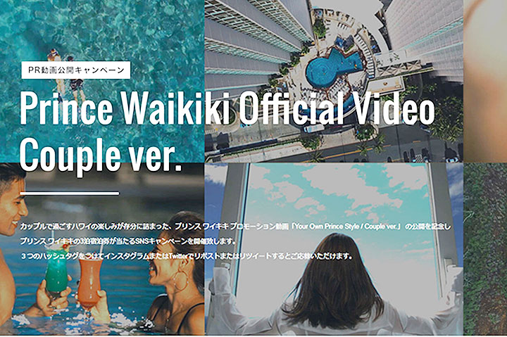 全室オーシャンフロントという最高の立地を誇るワイキキの人気ホテル「プリンス ワイキキ」では現在、 プロモーション動画「Your Own Prince Style / Couple ver.」 の公開を記念し、同ホテルの3泊宿泊券が当たるSNSキャンペーンを8月24日(金)まで実施中です。