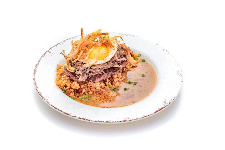 新解釈のハンバーガーやホットドッグ、ロコモコに加えて新しく仲間入りしたのは、「柚子胡椒コールスローとふりかけマヨネーズ入り和風唐揚げチキンサンドイッチ」($7.99)、「ケッパータルタルソース、キャベツのコールスロー、ピコデガヨ、マイクロパクチーを魚といっしょにトルティーヤにのせ、焼きライムを添えたハワイアンフィッシュタコス」($9.99)、「アンクルルイースポーチュギーズーセージ、目玉焼き、バーガー・ハレ名物クリスピーチェダーチーズ『フラスカート』入りハレ・エッグ&チーズサンドイッチ」($5.99)です。