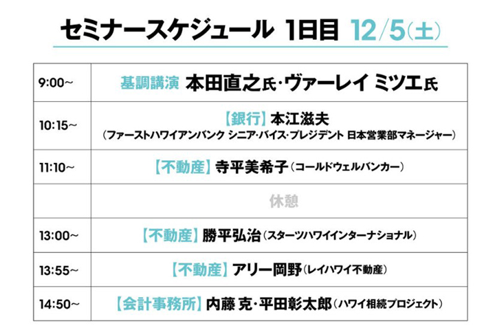 ハワイが大好きな方、ハワイに将来住みたいと思っている方は参加してみたいセミナーですね。ハワイを熟知している専門家のお話を聞けるチャンスをぜひお見逃しなく!