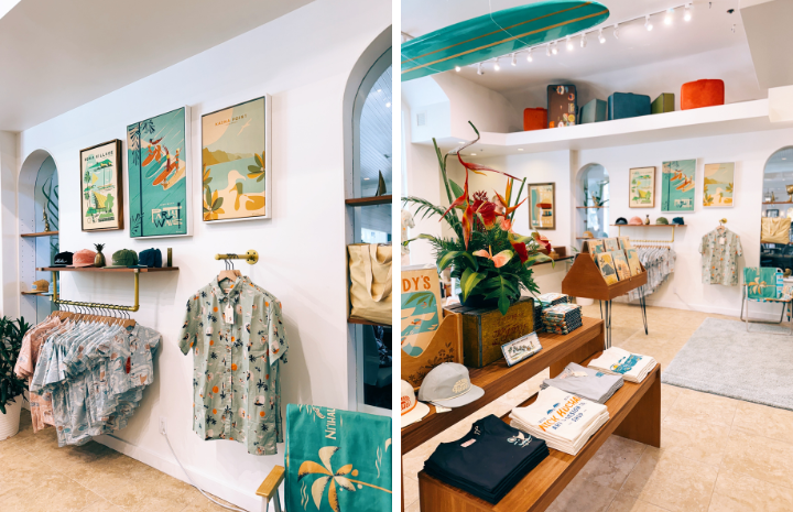 2025年10 月1日にオープンした同店は、カイルアに続く第2号店。古き良き時代のサーフカルチャーや旅のノスタルジーを感じさせるアート、アパレル、ライフスタイルグッズなどを展示販売しています。ハワイの美しさを独自の感性で表現したカッチャー氏の作品は世界的にも高く評価されており、ワイキキの中心で存在感を放つ新スポットとして早くも注目を集めています。