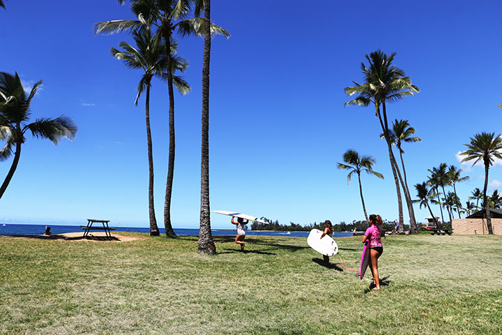 このビーチはパーク自体の面積と駐車場が広く、他のビーチに比べて空いていて、トイレやシャワーなどの施設が整っています。そしてビーチの前後に簡単にハレイワタウンに寄れる利点もあります。