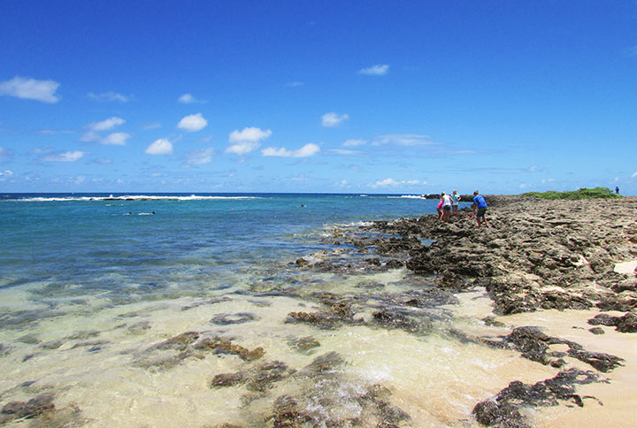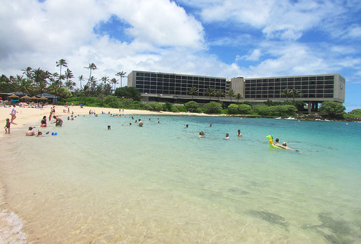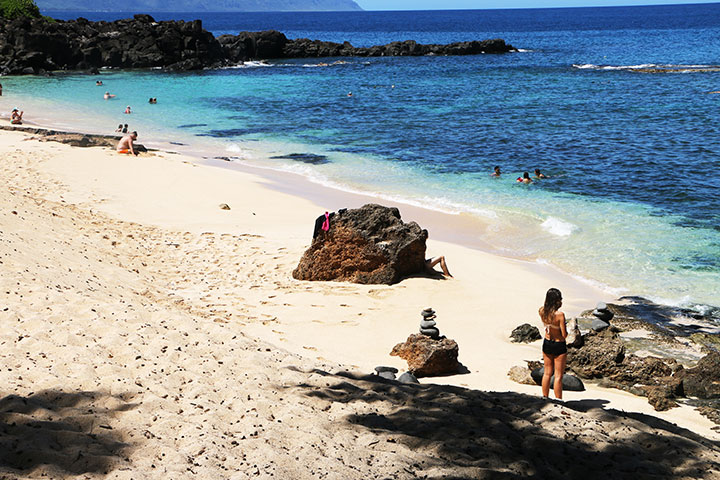 サンセット・ビーチからさらに車で15分ほど北上したカフクは「カフク・シュリンプ」で有名ですね。このカフクにある広大な「タートルベイ・リゾート」の横にある湾状のビーチ、「クイリマ・コーブ」は海水浴やシュノーケリングスポットとして人気です。