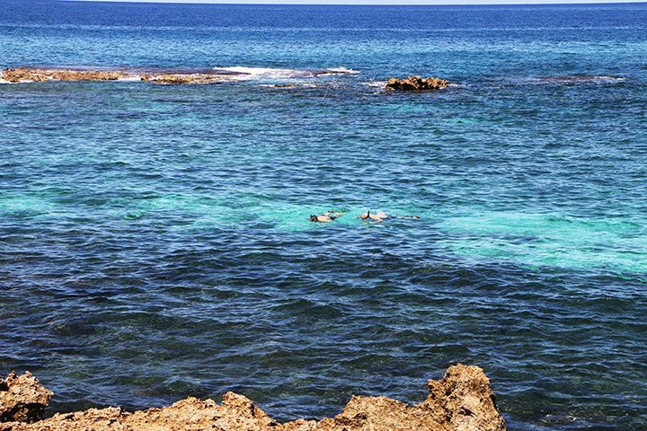 ただし、この囲まれた岩場からいったん外の深い部分に出ると海流が強く水深が深い場所みあるので十分注意してください。下が岩場でゴツゴツしているので、けがをしないように岩場用のビーチシューズを履くことをおすすめします。