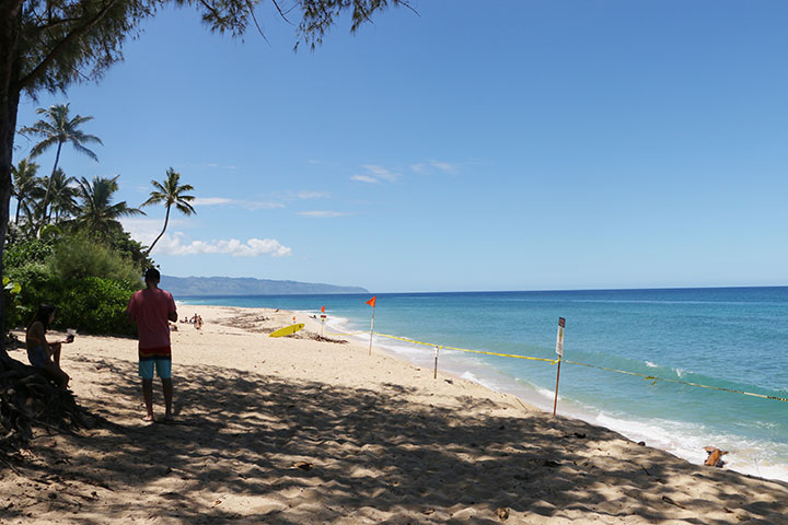 ワイメア・ベイ・ビーチには日陰がまったくと言っていいほどないので、ここで長い時間を過ごしたい場合は簡易テントやパラソルを持参することをおすすめします。