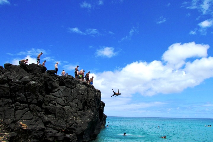 ビーチの左側にある大きな岩から海中に飛び降りて度胸試しをする人々が大勢いますが、危険なのでおすすめはできません。