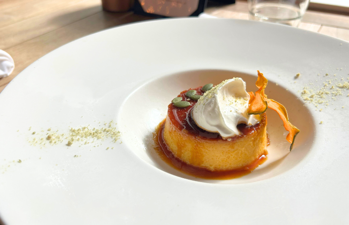 そしてデザートには、日本のかぼちゃを使用したパンプキンプディング($13)。なめらかな口当たりと濃厚な甘みが特徴で、季節感たっぷりの味わいが楽しめます。
