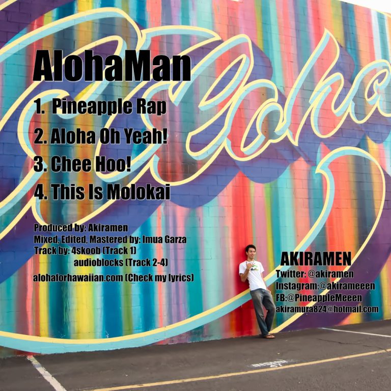 ジャケットのデザインなども自分で行い、私の好きなカカアコのウォールアートを利用して撮影を行いました。アルバムのタイトル「AlohaMan」にぴったりな「aloha」と書かれた壁も見つけましたよ!