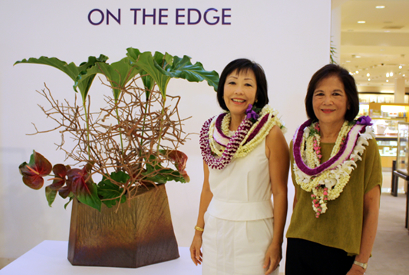 ハワイの草月流いけばな講師のリンダ・ハマサキ先生、ニーマン・マーカス総支配人夫人のジョイス・トモナリさんが中心となり、草月流の生徒たちが、今シーズンのカラーやファッションにインスピレーションを得た、美しく大胆な草月流のいけばなを、ニーマン・マーカス各フロアにディスプレイしました。