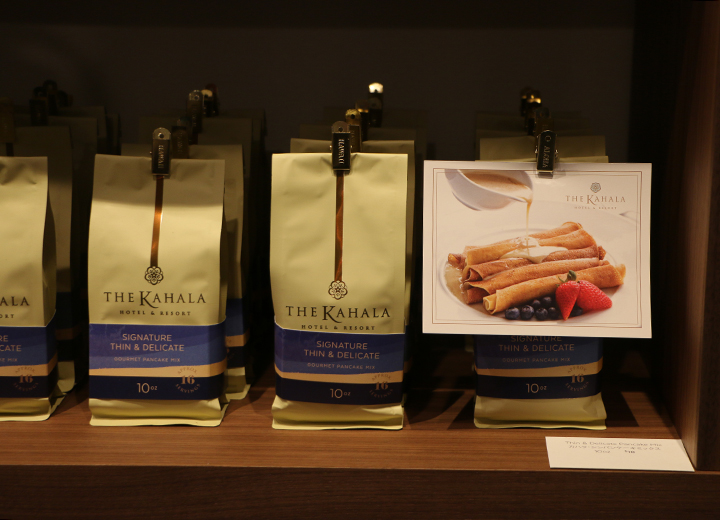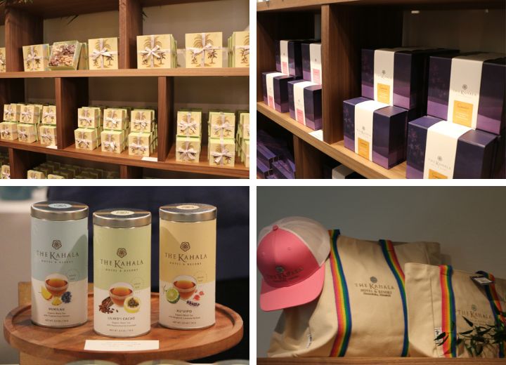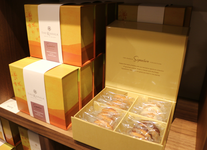 商品のラインナップは、同ホテルで人気ナンバー1のマカダミアナッツチョコレート、ココナッツショートブレッド、オーガニック紅茶、タンブラー、シリコン製コップ、そのほかにもカハラ限定のハローキティやロゴ入り・トートバックなど、お土産に人気の商品を取り扱っています。以下にいくつかの人気商品をご紹介しています。