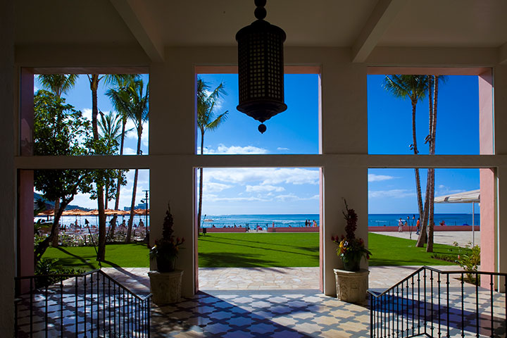 ハワイの他のホテルとは趣きが異なるスペイン風建築のロイヤル ハワイアンはディテールまですべてが美しく作られています。館内には、ホテルのゲストが海やガーデンの緑を見ながら、のんびりリラックスできる場所が多く設けられています。