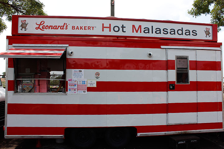 そして、ワイケレの帰りに(行きでも大丈夫)絶対立ち寄りたいのが、ハワイの代表的なスイーツ「レナーズ」のマラサダ! 場所は「ワイケレ・センター」の駐車場の一角。目印は赤白ストライプのワゴン。