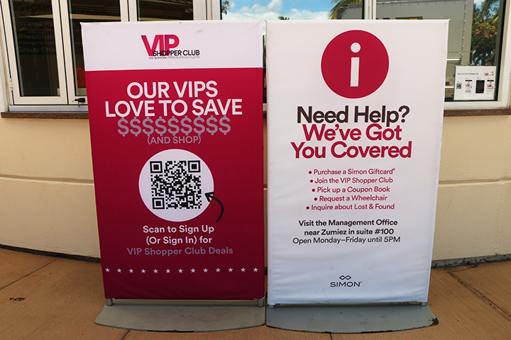 モールオフィスでは、VIPショッパーズクラブ加入のサポートをはじめ、ギフトカードの購入、落とし物、赤ちゃんの授乳場所へのアクセス、車いすの貸し出しなど、モールに関するあらゆる事項に対応します。