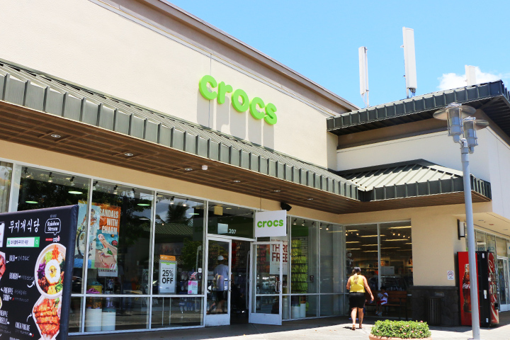 合成樹脂製のサンダルを販売してお馴染みのクロックスもアメリカのブランド。軽くて履き心地の良いサンダルが人気で、アウトレットのお店ではデザインも豊富。広い店内には、男性、女性、子ども用もあります。