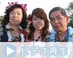 挙式当日、会場のカピオラニ公園で長谷川さん一家を待つマック牧師のもとに、娘の雅美さんが走ってきました。 雅美さん:「こんにちは〜。今、両親が他の家族と一緒にこっちへ向かって来ています。両親はフラのショーを今から見ると信じ込んでいます」。 マック牧師:「今日は、娘さんがあなたがたにメモリアルの挙式をプレゼントしてくれました」。 |