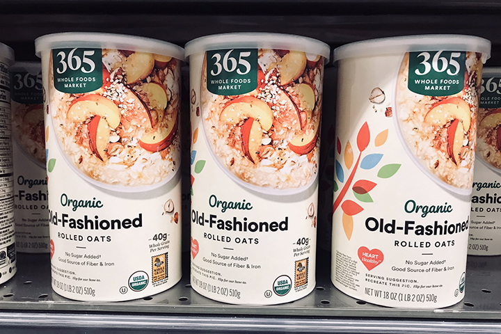 オートミールは、食物繊維、ミネラル、ビタミンなど、健康に良い栄養素が豊富に含まれており、アメリカでは朝食によく食べられています。お鍋にオートミールと水や牛乳などを加えて調理し、フルーツやナッツ、ナッツバター、はちみつなどをトッピングして頂きます。こちらは、510グラム入りで$7.99。オーガニックなのに安い! 蓋つきで便利。