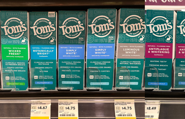 化学添加物を避け天然由来の成分が使用されていることで人気なトムズ・オブ・メインの歯磨き粉。様々なタイプが販売されていますが、ホワイトニング効果を期待される方は、WHITEやWHITEININGと表記されたものを購入しましょう。