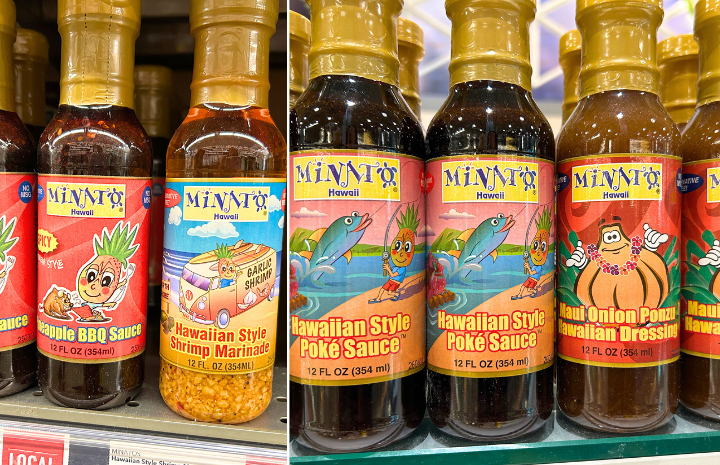 ハワイで作られた「ミナト・ハワイ」のオリジナル・ドレッシング各種は、日本に帰ってからもハワイの味を再現できると好評。1番の人気は、「ハワイアンスタイル・シュリンプマリネード」。ノースショア名物のガーリックシュリンプを自宅で味わってみてくださいね。ポケ売り場にはポケソースもありました。プラスチック製のボトルなので、割れる心配なく持ち帰れます。