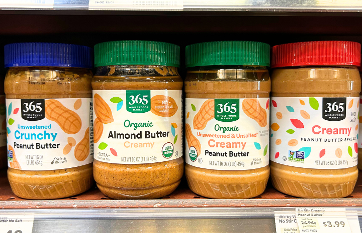 値段:ピーナッツバター 1パウンド(453g)$7.29、アーモンドバター 1パウンド(453g)$14.49